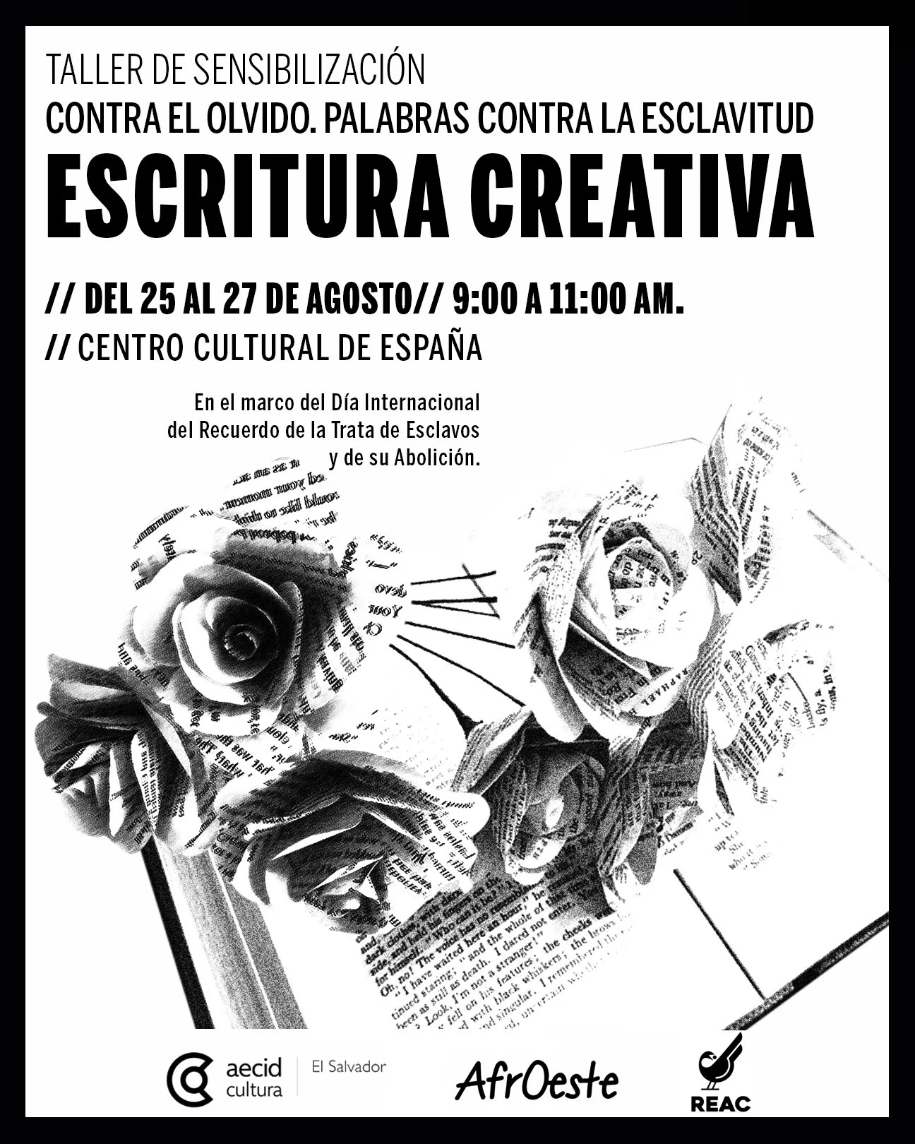 «Contra el olvido. Palabras contra la esclavitud», un taller de sensibilización y escritura creativa, del 25 al 27 de agosto, en el que -junto a la antropóloga Marielba Herrera- se crearon condiciones creativas desde las que se abordó la abolición de la esclavitud y la trata trasatlántica.